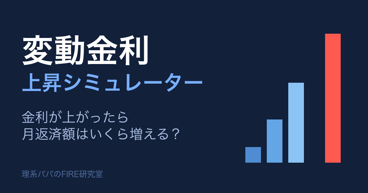 この記事では、借入残高・残期間・現在の金利を入力するだけで、金利が0.5%・1%・2%・3%上昇したときの月返済額と年間追加負担を即計算できるシミュレーターを公開します。我が家も変動金利を選択しているので、自分の数値も含めて解説していきます。